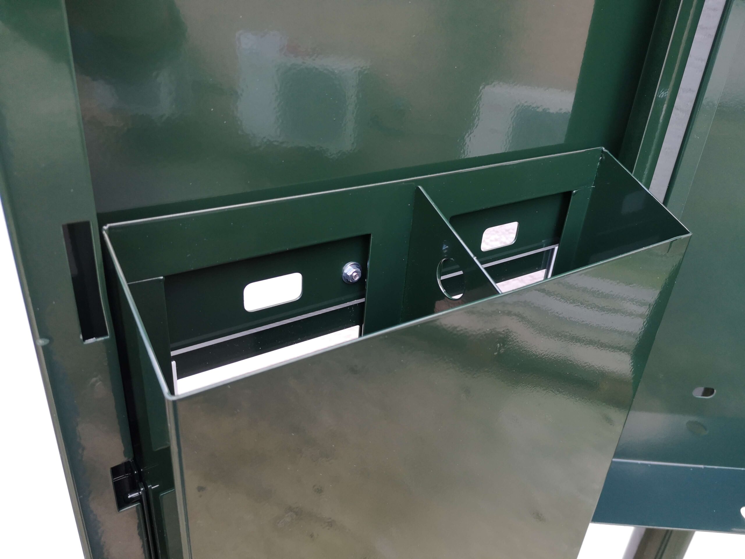Visibilité et Accessibilité : Dispositif attrayant avec système de verrouillage par clé triangulaire (fournie) et fenêtres de contrôle pour surveiller le niveau de remplissage.