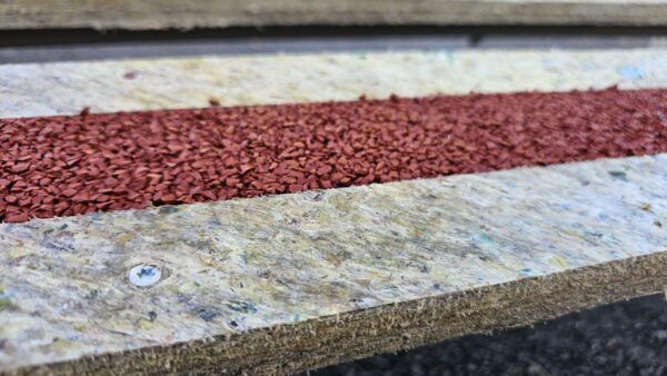 Lattes Ajustables : Les quatre lattes en Komacel, dotées d’un revêtement tartan bicolore, permettent un réglage rapide et précis de la longueur du saut.